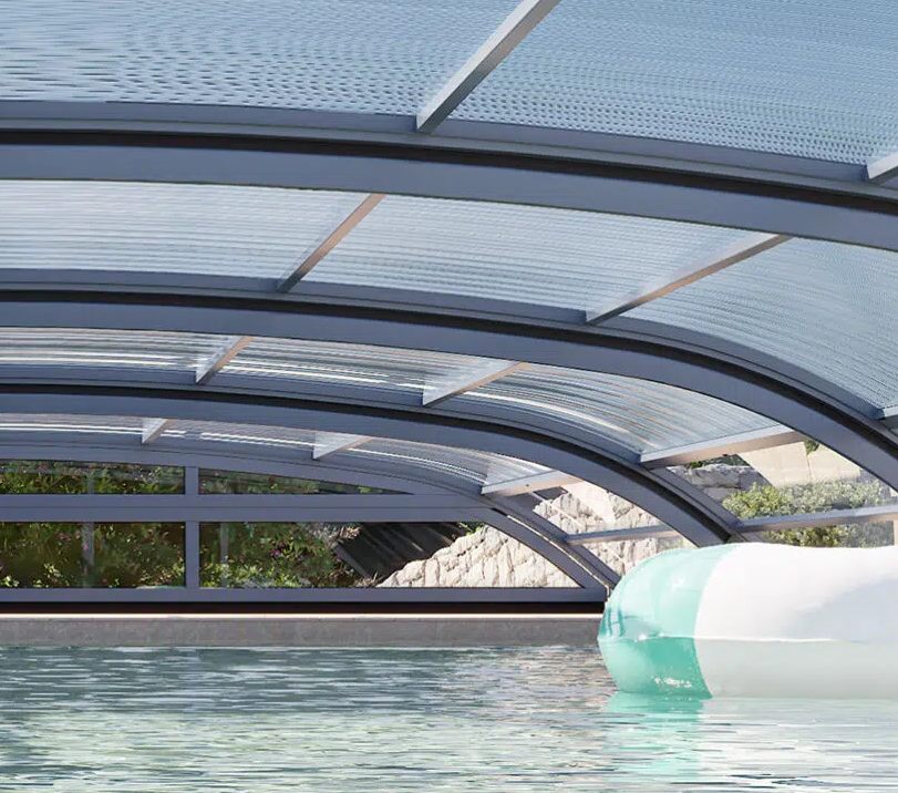 Un abri ou une terrasse mobile Mondial Piscine fait gagner jusqu’à 10°C. Baignade plus souvent, confort, mieux protégée et eau tempérée !